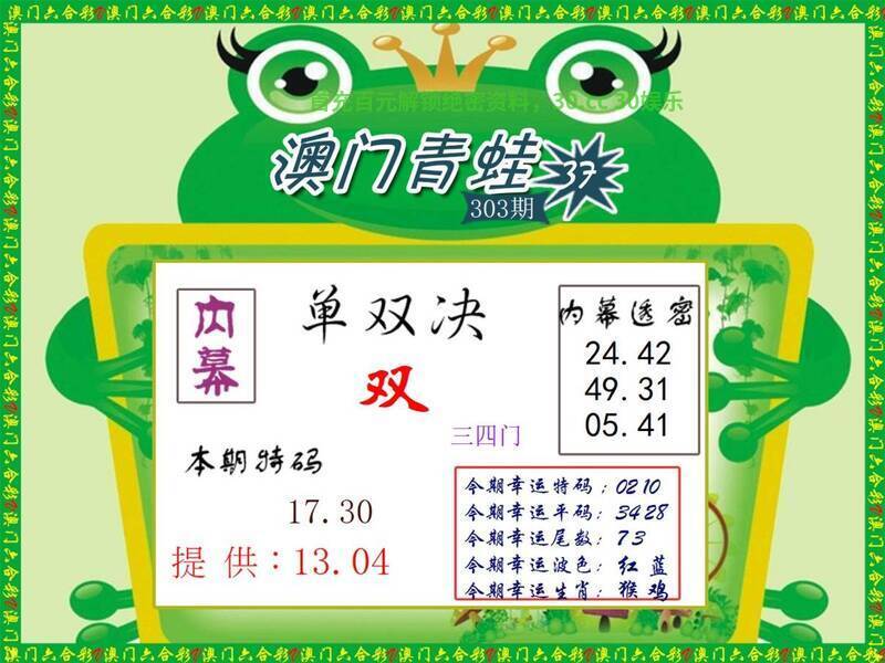 303期:Ω前后两肖┣前肖+猴马┫开:兔15准