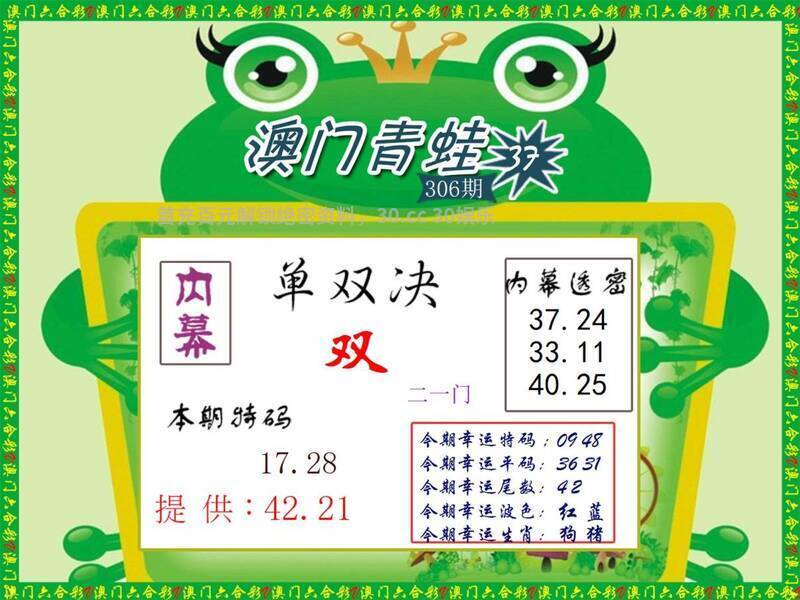 306期:Ω前后两肖┣前肖+猪马┫开:牛17准
